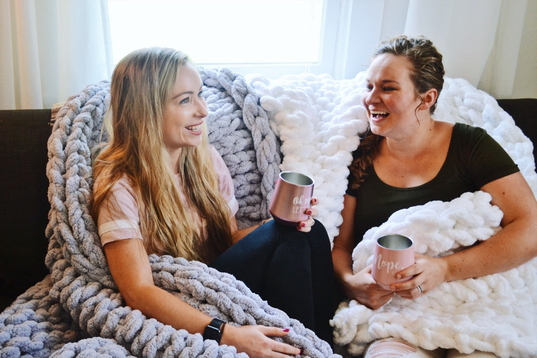 Each of our blankets arrive in gift-worthy fashion: Folded, tied with a satin bow and packaged in tissue paper along with care instructions. Your gift can ship directly to your friend with a note from you or straight to your door to deliver this comfy gift in person!